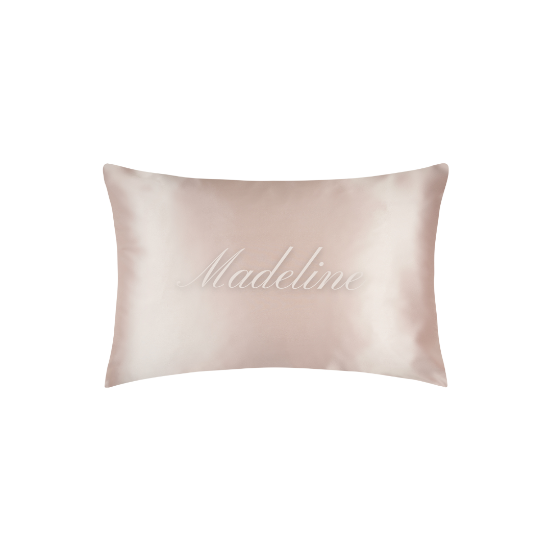 We are delighted to offer you the opportunity to personalise our 100% pure silk pillowcases, making your gift truly one-of-a-kind. Choose between our ‘house standard’ or ‘house king’ sizes and select your preferred colour. Simply click the ‘personalisation’ button below and add up to three initials. Each pillowcase is personalised with matching silky thread in a classic, traditional font, ensuring a timeless finish. Up to 3 initials per pillowcase.