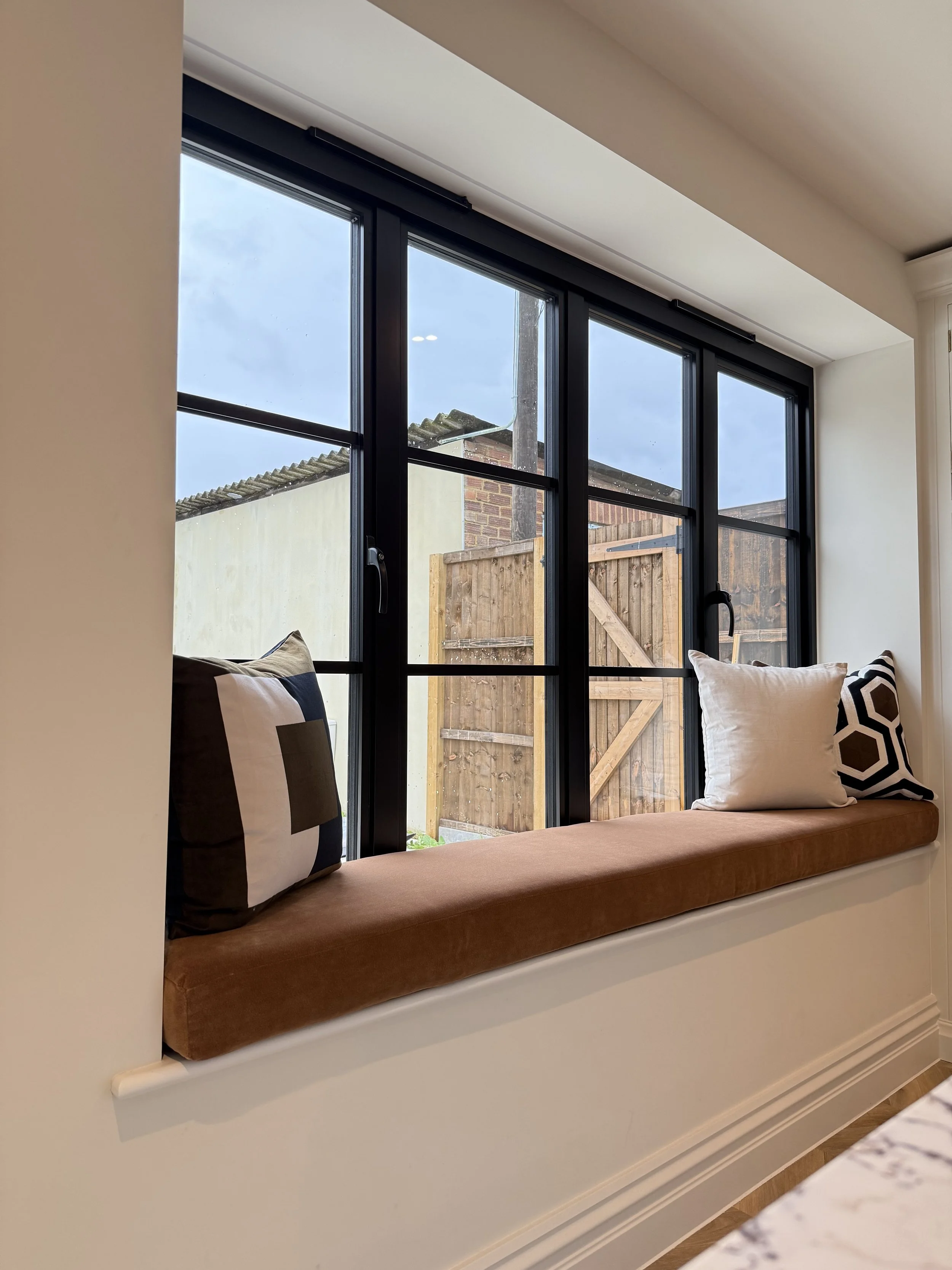 Our made-to-measure velvet cushion, complemented by a selection of scatter cushions, is the perfect addition to soften your newly refurbished kitchen. Crafted with luxurious velvet fabric and tailored to your exact dimensions, these cushions add both comfort and style. They bring a subtle touch of elegance while enhancing the welcoming atmosphere of your space. Designed and created in our London studio, each piece promises quality and longevity, ensuring your kitchen feels inviting for years to come.